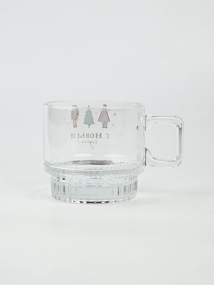 Новогодняя кружка стеклянная объёмом 270 мл — это стильный и практичный аксессуар для вашей кухни или офиса.
