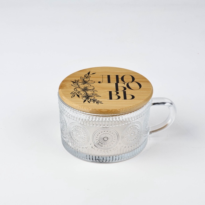 Кружка с крышкой стеклянная «Любовь», 450 мл