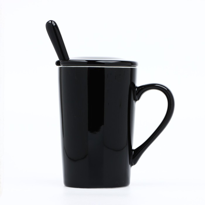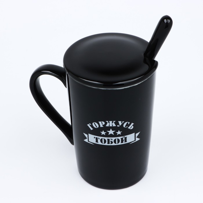 Керамическая кружка с крышкой и ложкой объёмом 420 мл — идеальный выбор для подарка мужчине!