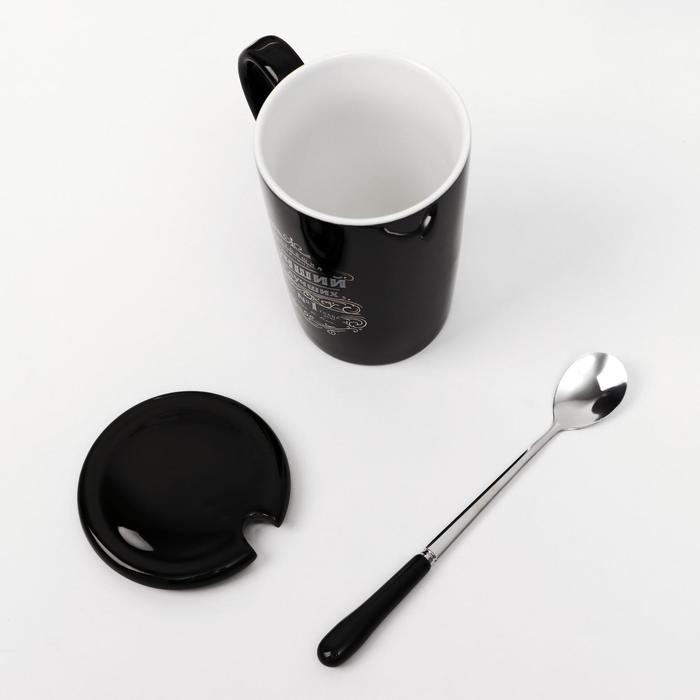 Керамическая кружка с крышкой и ложкой объёмом 420 мл — идеальный выбор для подарка мужчине!