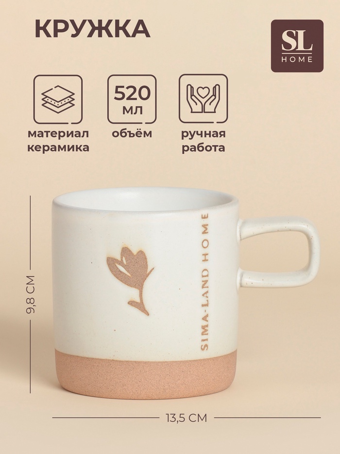 Объем 520 мл позволит вам наслаждаться большими порциями любимого чая или кофе, а матовая гладкая поверхность приятно ощущается в руках. Яркий цветочный декор превратит каждое чаепитие в настоящее событие, даря атмосферу весны и тепла.