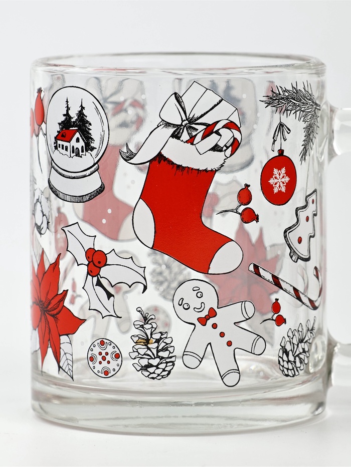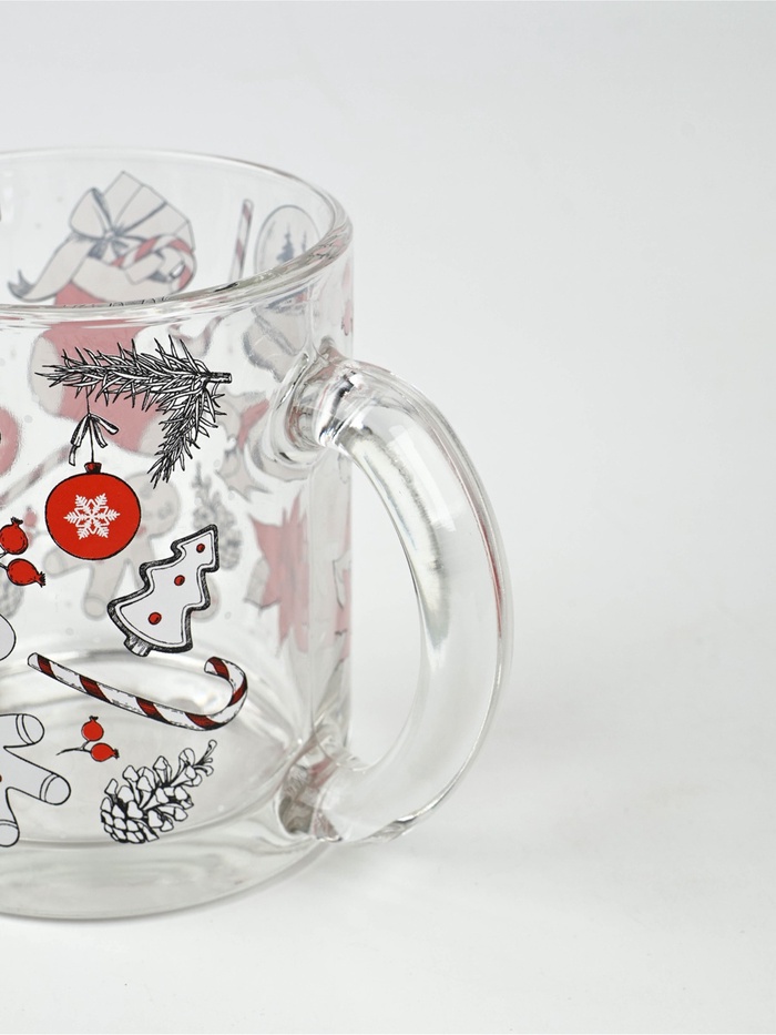 Стеклянная новогодняя кружка объёмом 300 мл — это стильный и практичный аксессуар для вашей кухни или офиса.