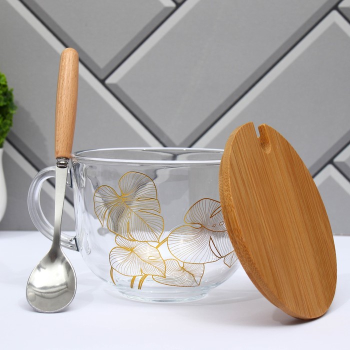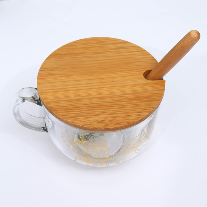 Кружка стеклянная объёмом 400 мл — идеальный выбор для любителей чая и кофе. Она оснащена деревянной крышкой и ложкой, что делает её использование ещё более удобным.