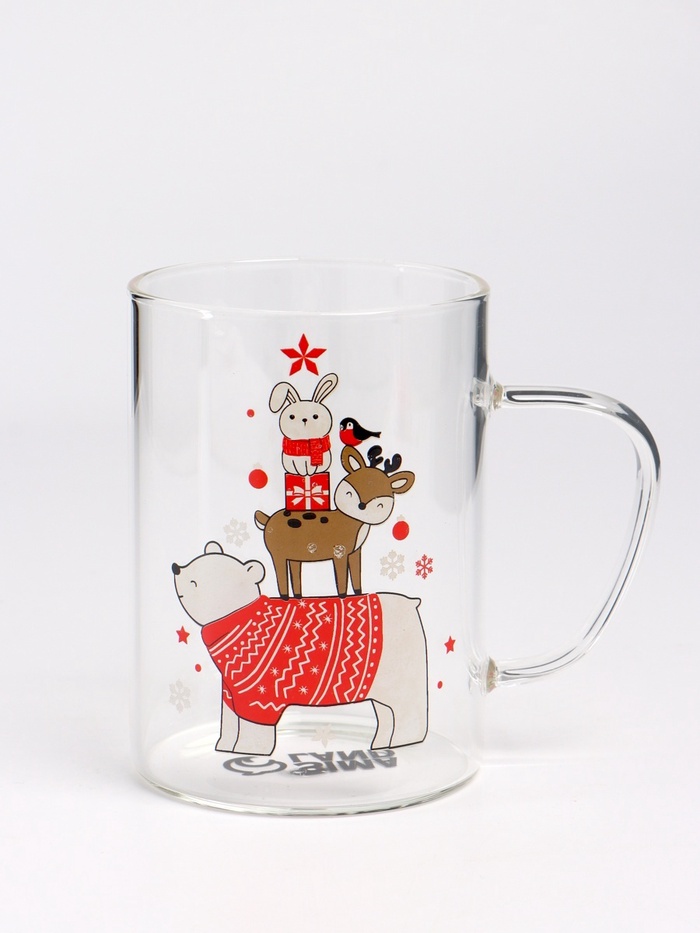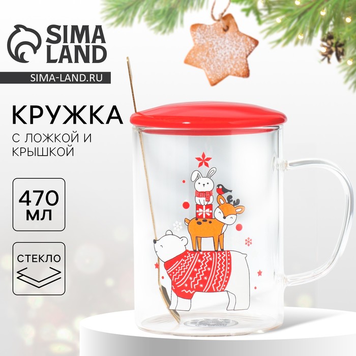 Кружка стеклянная с ложкой и крышкой «Зверята», 470 мл