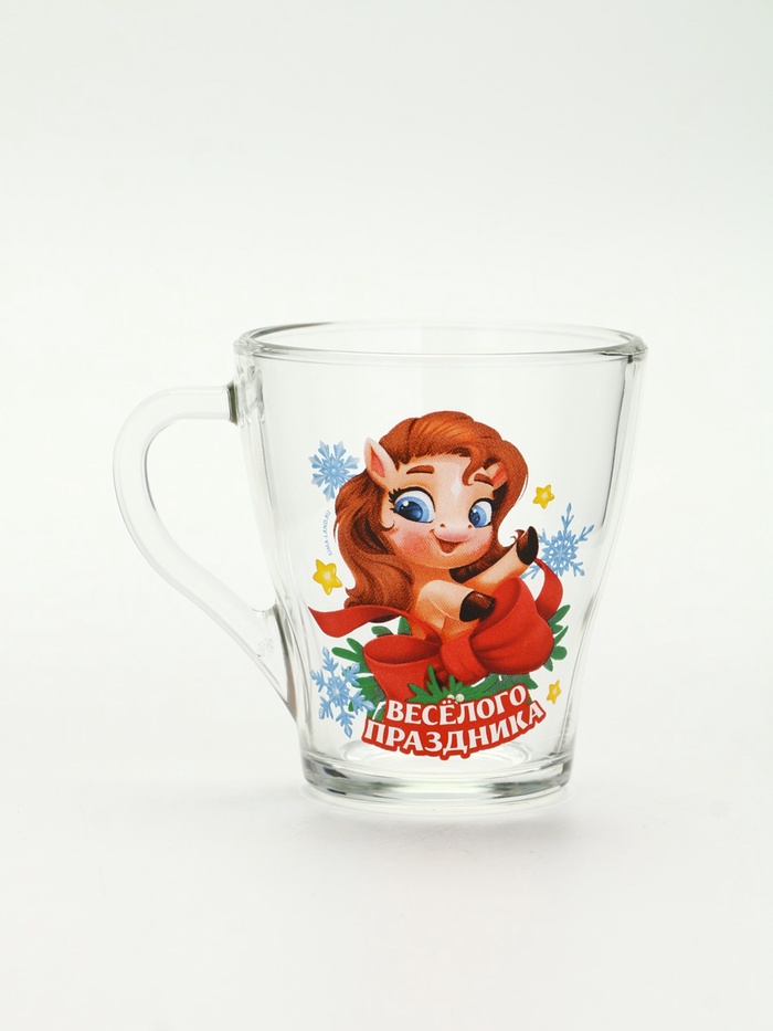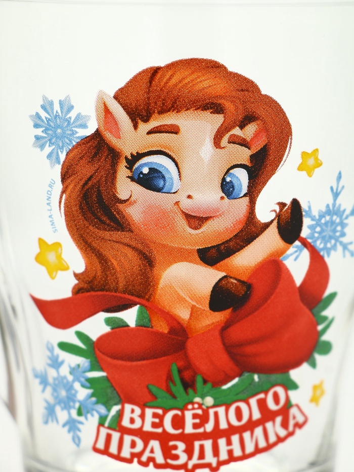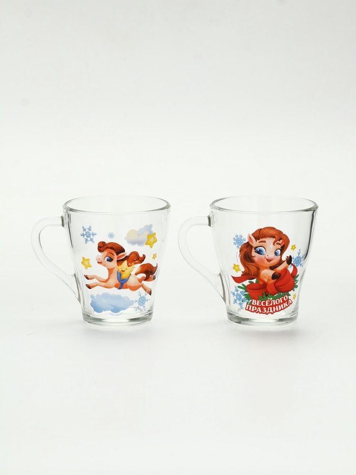 Набор стеклянных кружек «Весёлого праздника» — это лёгкий галоп счастья, запечатлённый в прозрачном стекле. Две кружки, как два такта в новогодней мелодии, и на каждой — новогодние пони: не символ года в пафосном обрамлении, а живые, чуть озорные — будто только что прибежали с мороза, чтобы первыми поздравить. Никаких надписей на корпусе — только изображение, а фраза ”Весёлого праздника” появляется в момент подноса к губам, как шёпот, адресованный лично вам.