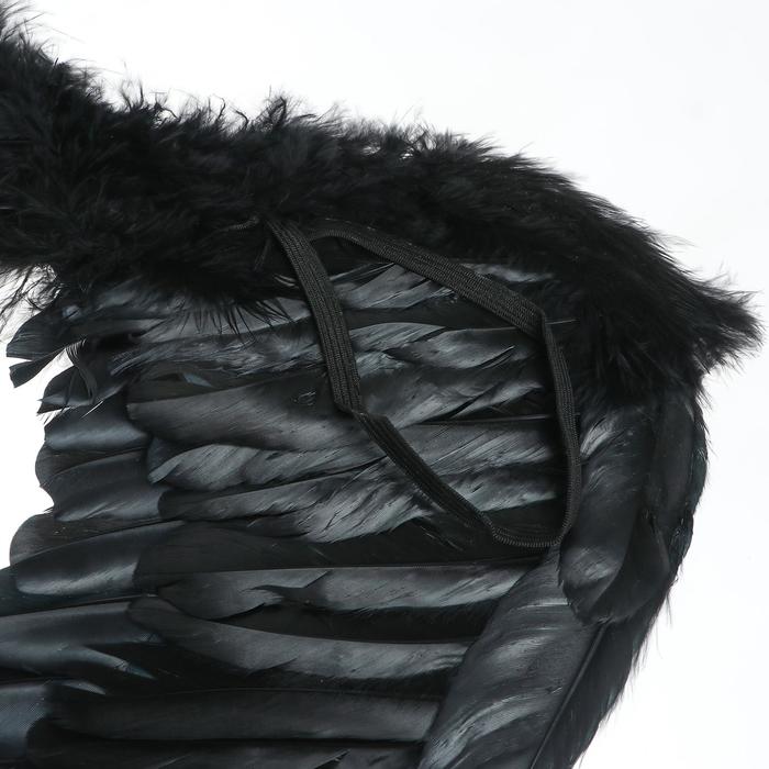 Крылья изготовлены из натуральных перьев и надеваются с помощью удобных резинок. Такой аксессуар придаст образу романтичности и позволит остаться женственной и прекрасной даже в самый мистический праздник в году. А когда волшебная ночь закончится, аксессуар отлично подойдёт для театрализованных постановок, тематических вечеринок и фотосессий.