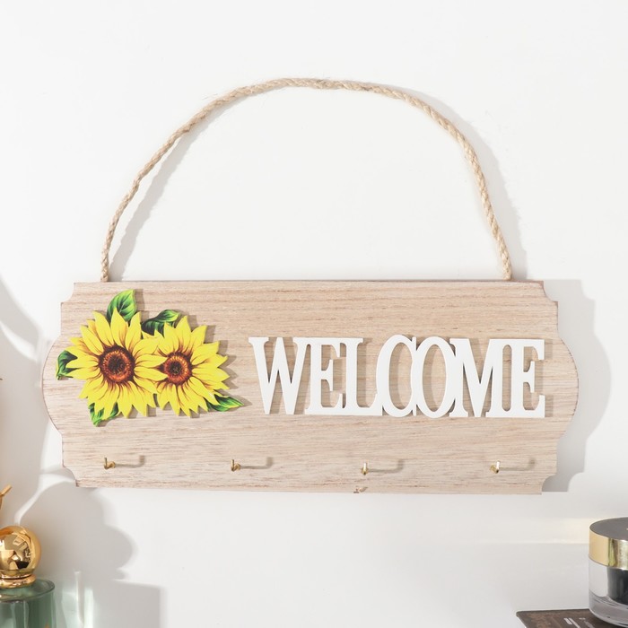 Крючки декоративные дерево "Добро пожаловать. Подсолнухи" 2,5х29,5х11,5 см