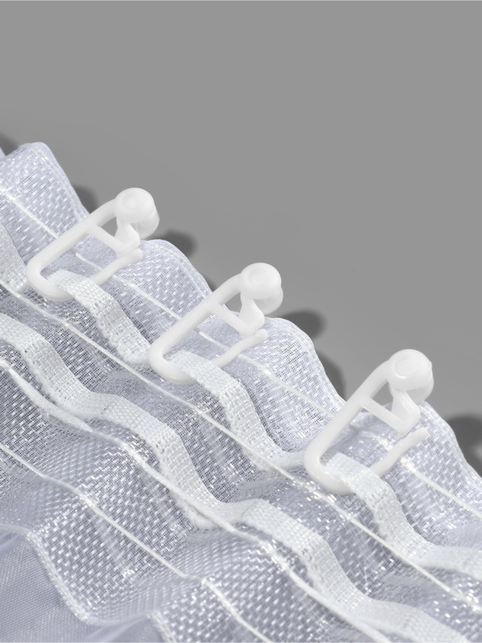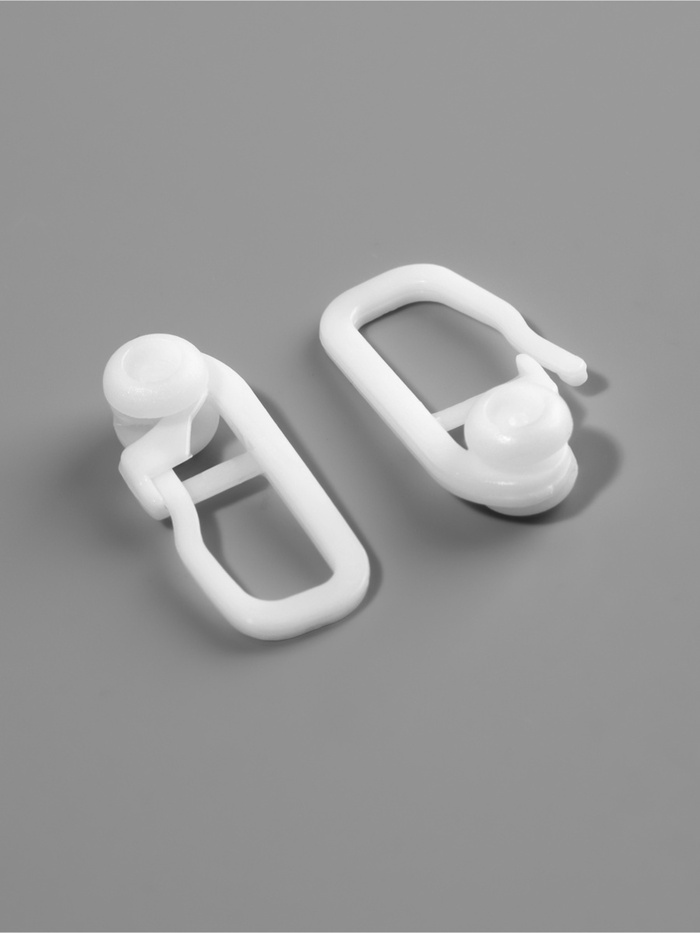 Используйте крючки, чтобы повесить на карнизе шторы или тюль. Проденьте в шторную ленту конец крючка, а ролик вставьте в специальный рейлинг. Изделия помогут быстро открыть шторы и вернуть их на место.
