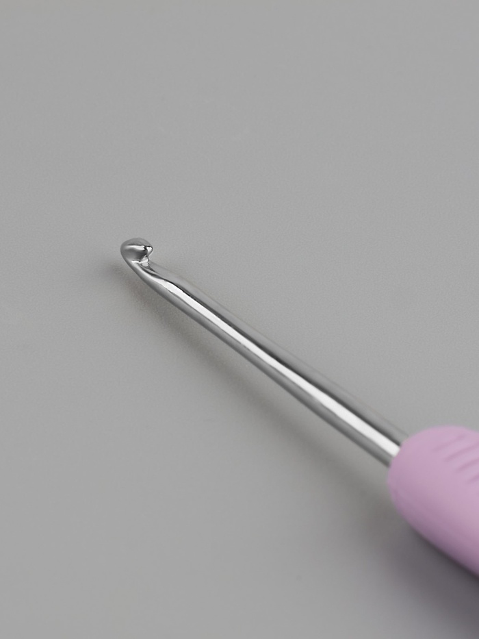 Идеален для вязания кружев, салфеток, амигуруми и предметов одежды. Сменные диаметры помогают быстро переходить между разными техниками вязания. Сиреневый цвет ручки делает инструмент заметным среди принадлежностей для рукоделия.