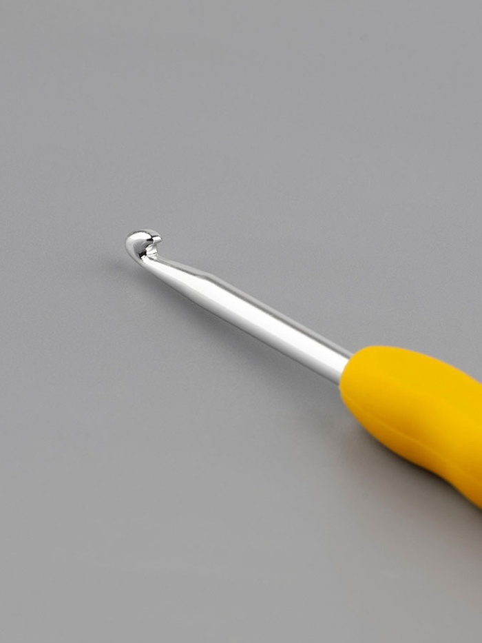 Вязальный крючок с мягкой силиконовой ручкой для работы с объемной пряжей. Диаметр 3,5 мм подходит для создания теплых вещей быстрыми темпами — от уютных шарфов до плотных свитеров.