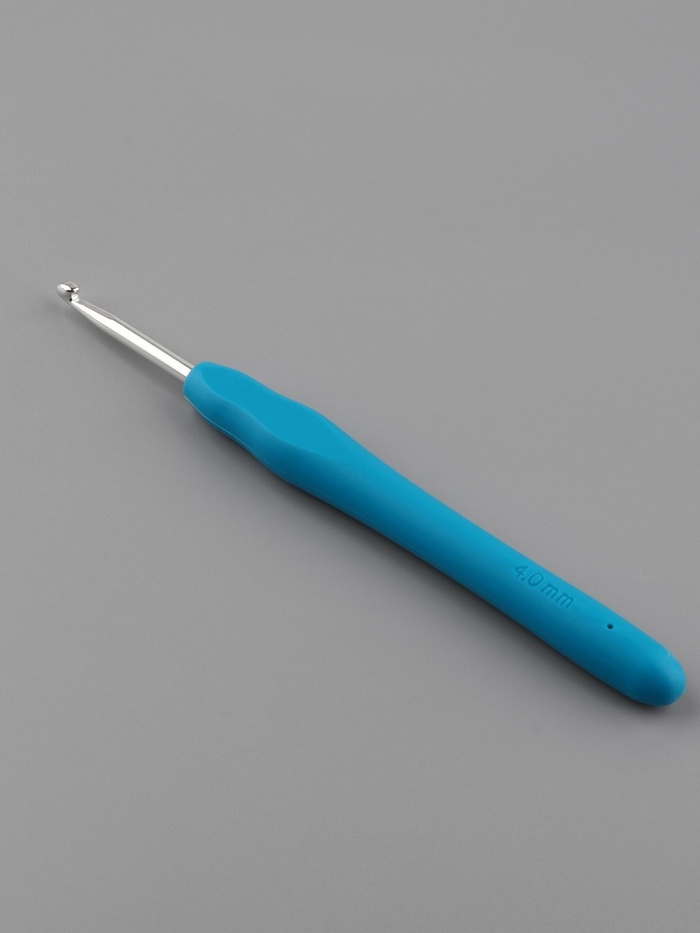 Вязальный крючок с силиконовой ручкой для работы с толстой пряжей. Диаметр 4 мм справляется с объемной шерстью, мохером и синтетическими нитями, ускоряя создание теплых вещей.