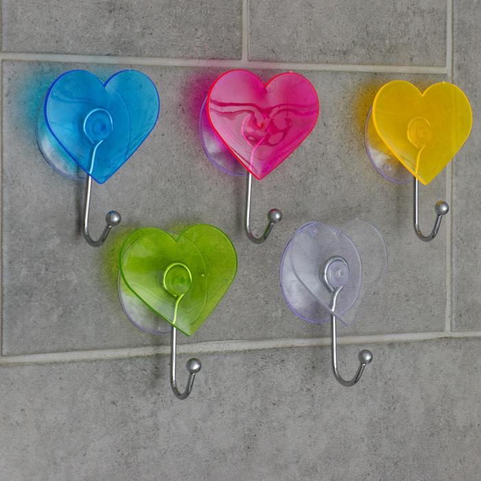 Крючок на вакуумной присоске «Сердце», цвет МИКС