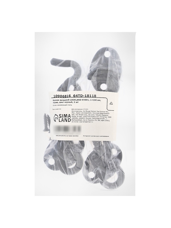 Крючок ветровой LOCKLAND KV001, L=100 мм, нержа, цвет черный, 2 шт