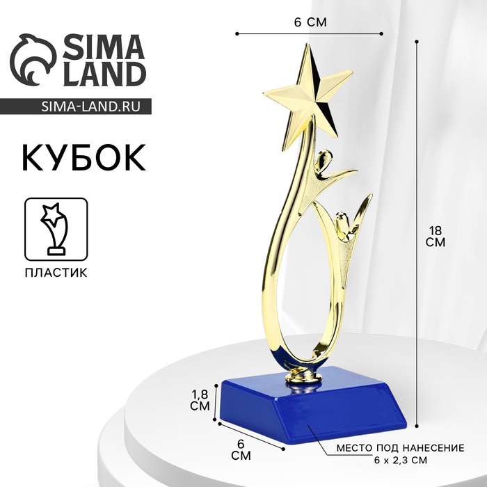 Кубок, наградная фигура под нанесение «Человек со звездой», золото, подставка пластик синяя, 18×6×6 см