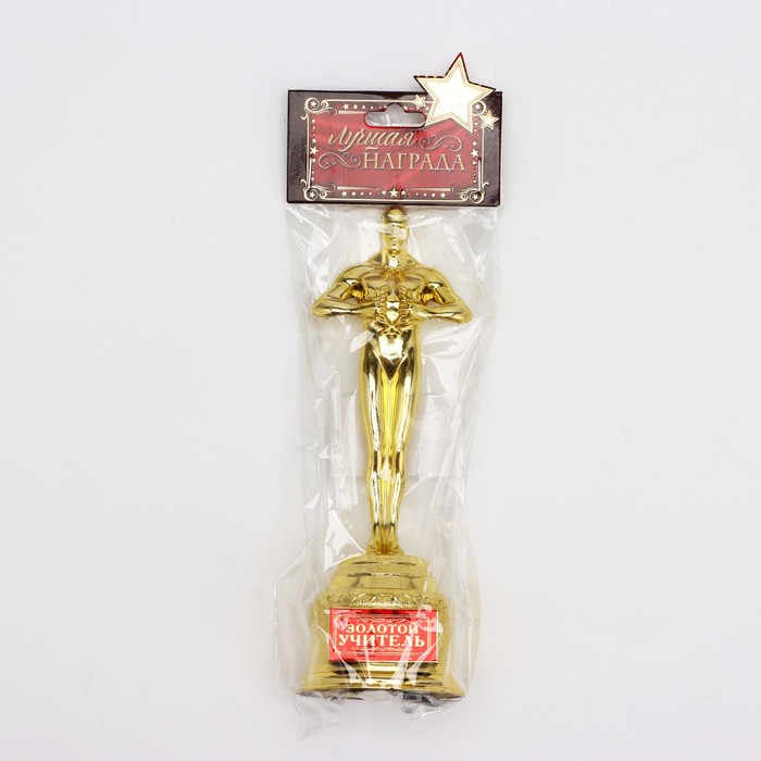 Золотистая фигура «Оскар» с лавровым венком в руках дополнена пластиковой подставкой. На постаменте есть яркий голографический шильд со званием получателя награды.