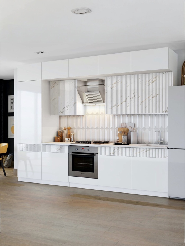 - Фасады открываются с помощью нажатия, установлен механизм push to open.
