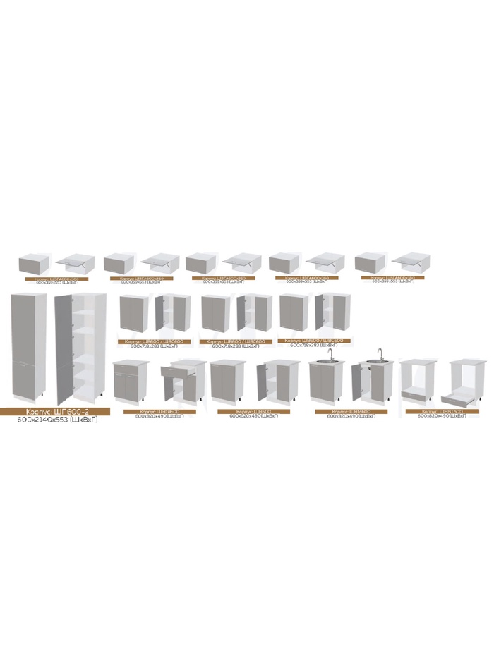 - Глубина нижних модулей (по корпусу): 490 мм.