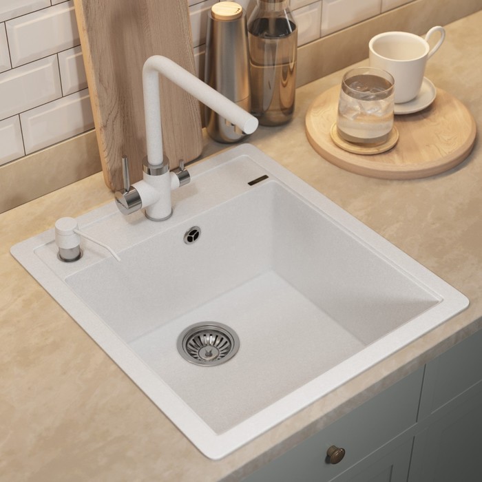 Уникальная фактура камня смотрится благородно, вписывается в любой интерьер и делает его утонченным. Мойка гладкая и приятная на ощупь, прочное матовое покрытие защищает мойку от любых внешних воздействий. При эксплуатации изделие не издаёт неприятного шума и грохота.
