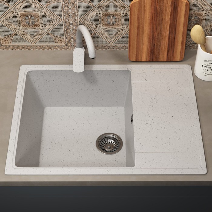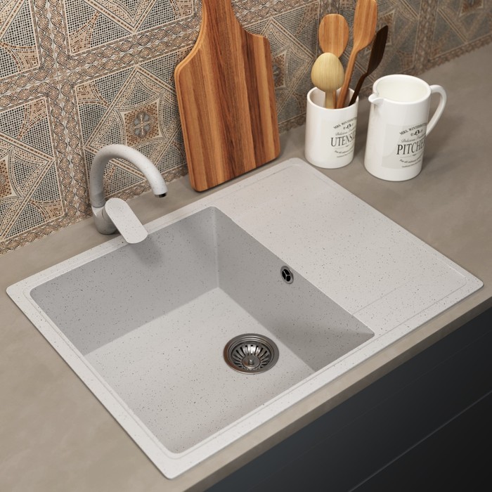 Прямоугольная каменная мойка для кухни из кварцевого песка с крылом и увеличенной чашей от бренда Uperwood.