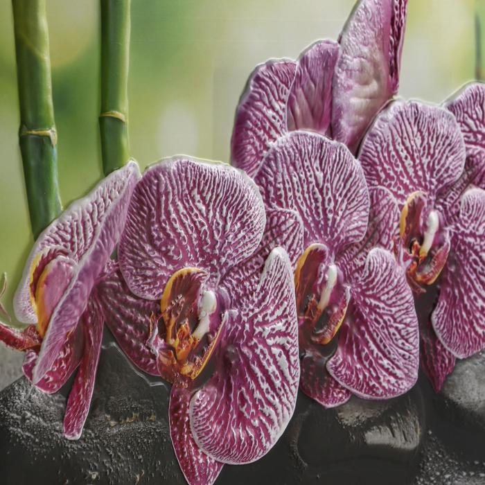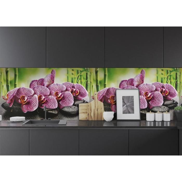 Украшен реалистичным изображением экзотического цветка, выполненного методом фотопечати. Размер фартука составляет 1000 мм в длину, 600 мм в высоту и 0,5 мм в толщину, что делает его легким и удобным для установки. Такой фартук идеально подходит для покрытия стены над рабочей зоной кухни, защищая её от брызг жира, воды и других загрязнений.
