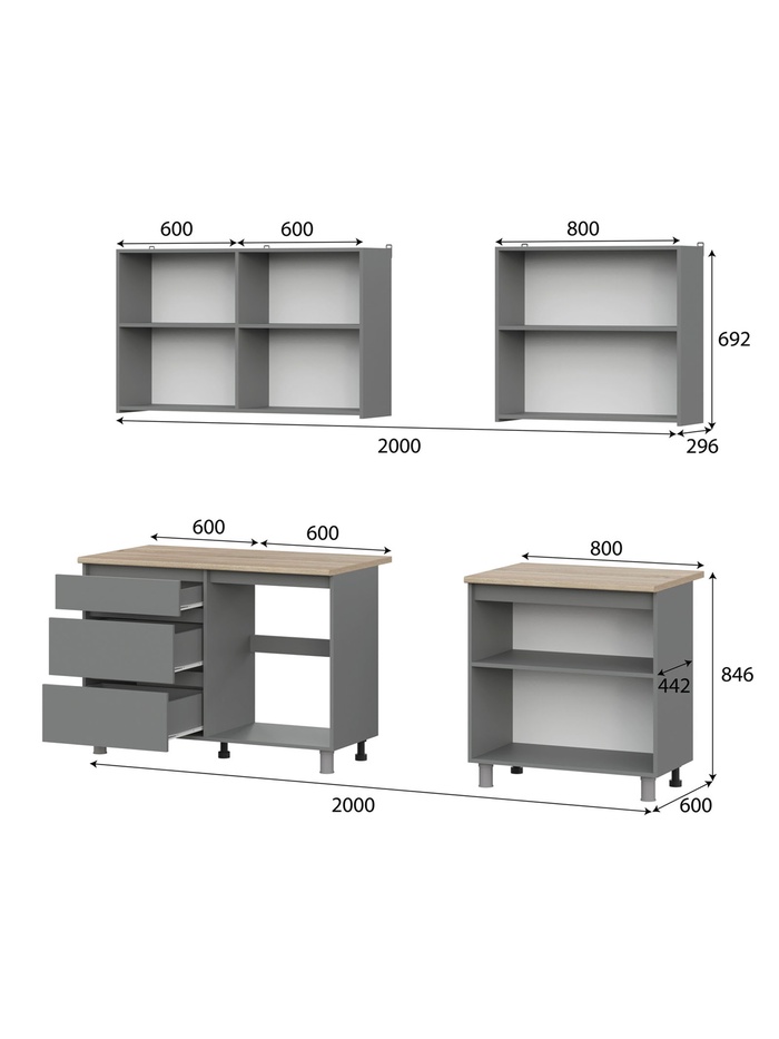 Кухонный гарнитур 2000 Денвер, Графит/Столешница Дуб сонома