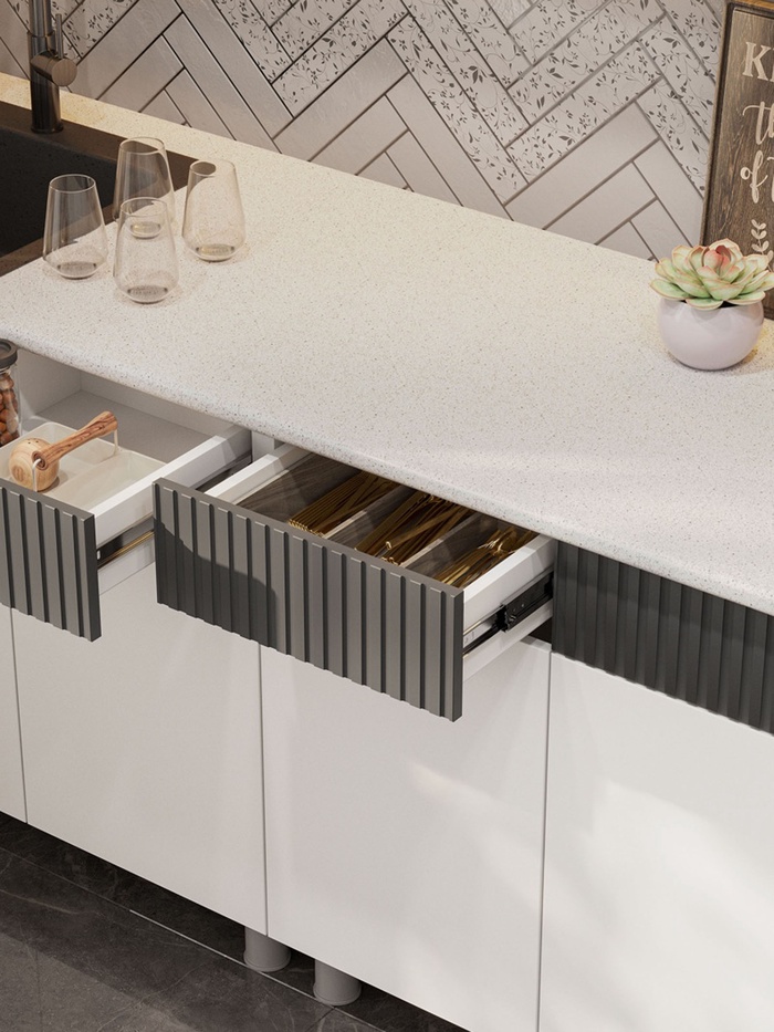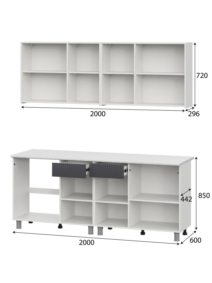 Кухонный гарнитур 2000 София, Графит МДФ/Белый МДФ/Столешница Антарес