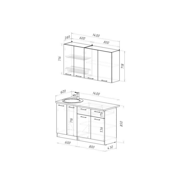 Кухонная мойка, стеновая панель, решётка для посудосушителя, приобретаются отдельно!