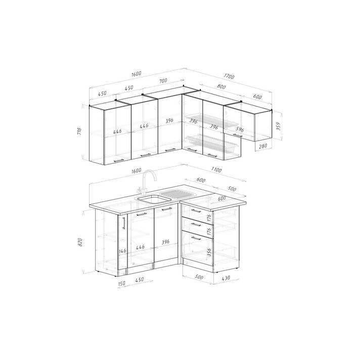 Кухонная мойка, стеновая панель, решётка для посудосушителя, приобретаются отдельно!