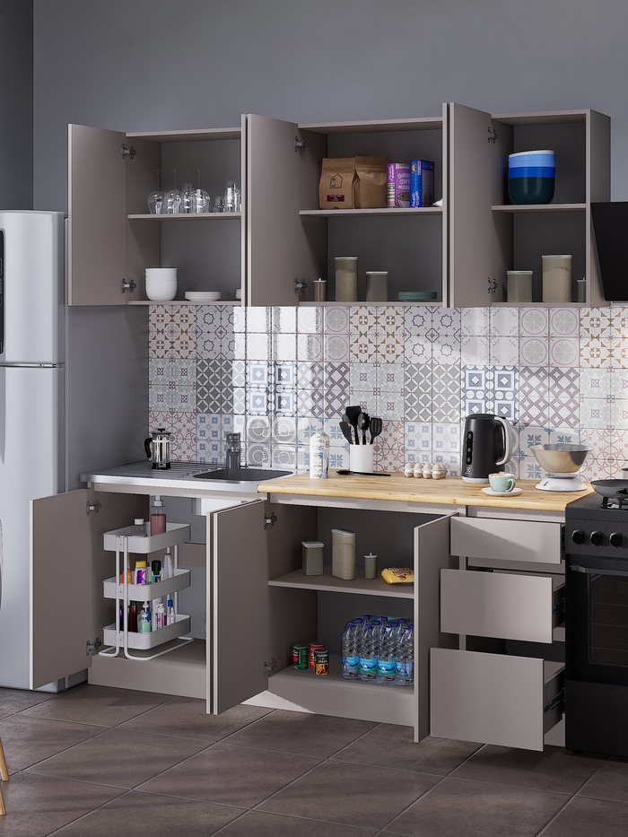 - Организация площадей: гарнитур поможет рационально использовать каждый сантиметр вашей кухни.