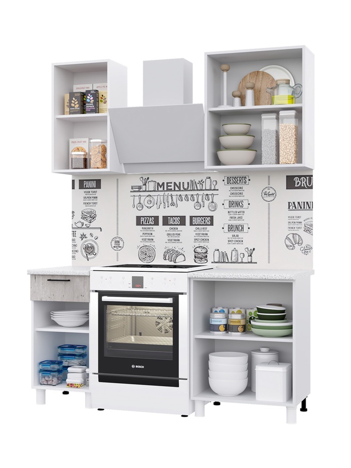 Готовое решение для создания уюта вашей кухни. Предназначен для оборудования кухонных помещений жилых квартир. Компактный лаконичный дизайн комплекта с функциональным наполнением поможет организовать хранение посуды, специй, контейнеров и прочих предметов домашнего обихода.