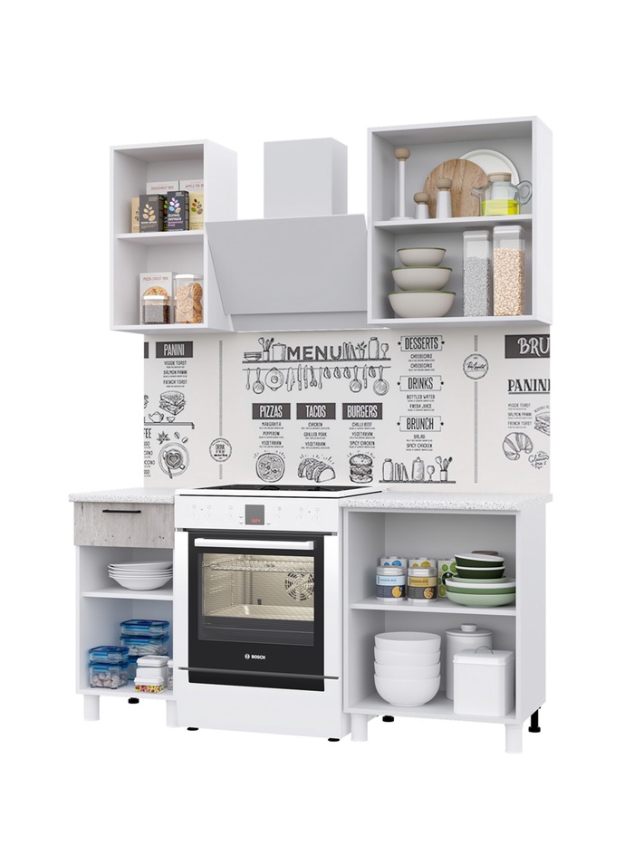 Готовое решение для создания уюта вашей кухни. Предназначен для оборудования кухонных помещений жилых квартир. Компактный лаконичный дизайн комплекта с функциональным наполнением поможет организовать хранение посуды, специй, контейнеров и прочих предметов домашнего обихода.