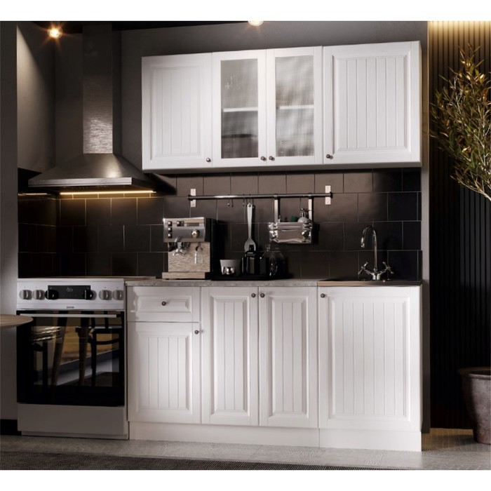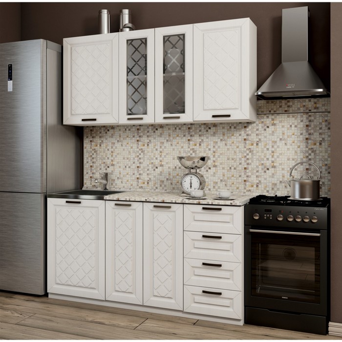 Кухонный гарнитур Хозяюшка - привлекает сочетанием фасадами из МДФ, и фрезеровкой, которая придает графичность и лаконичность стиля. Мебель, обладающая привлекательной эстетикой, которая создает в себе современные тенденции и характерные особенности нашего времени. Модули различных размеров, выдвижные ящики и полки обеспечивают максимальное использование пространства для хранения посуды, продуктов и других кухонных предметов. Гарнитур комплектуется подробной инструкцией по сборке, что облегчает процесс установки и позволяет собрать его без лишних усилий.