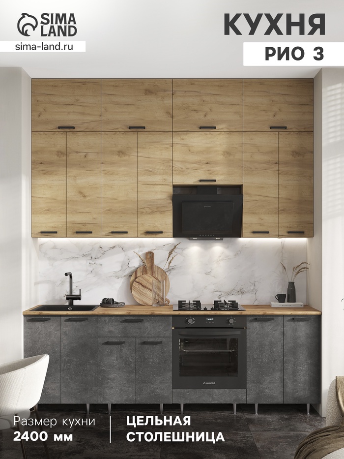 Кухонная мойка, стеновая панель, решётка для посудосушителя приобретаются отдельно.
