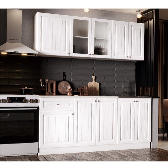 Кухонный гарнитур Хозяюшка - привлекает сочетанием фасадами из МДФ, и фрезеровкой, которая придает графичность и лаконичность стиля. Мебель, обладающая привлекательной эстетикой, которая создает в себе современные тенденции и характерные особенности нашего времени. Модули различных размеров, выдвижные ящики и полки обеспечивают максимальное использование пространства для хранения посуды, продуктов и других кухонных предметов. Гарнитур комплектуется подробной инструкцией по сборке, что облегчает процесс установки и позволяет собрать его без лишних усилий.