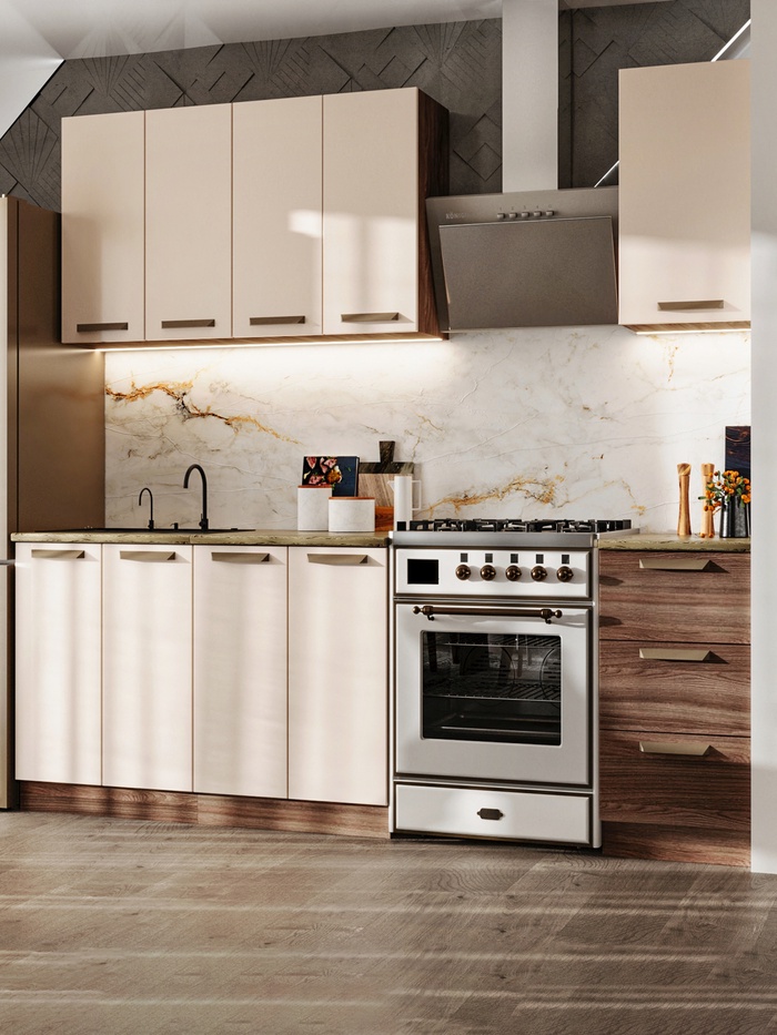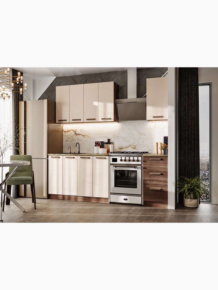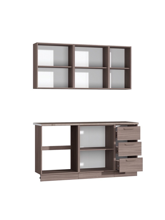 Набор мебели, предназначенный для обустройства кухни. Гарнитур обеспечивает функциональность кухни, позволяя хранить продукты, посуду и кухонные принадлежности по местам, организует рабочее пространство для приготовления пищи. Поможет поддерживать порядок на кухне и делает процесс приготовления еды более комфортным и приятным.