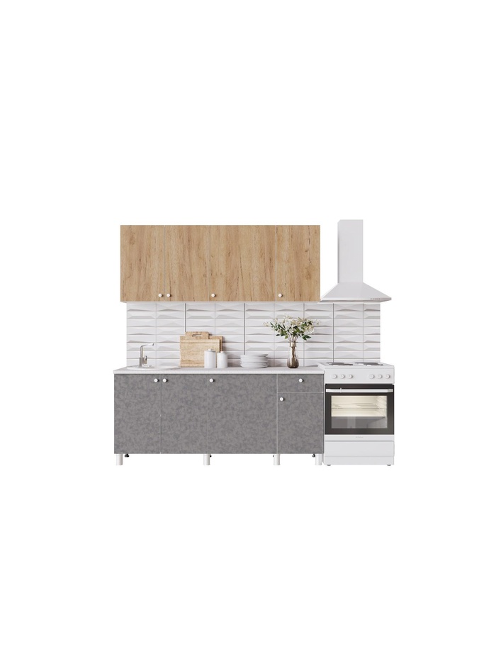 Кухонный гарнитур прямой «Поинт», 1800 мм, цвет бетон/золото фасад/белый корпус