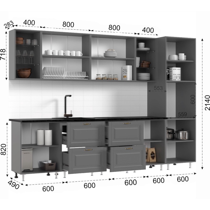 Кухонный гарнитур 3000 Престиж - это современное и функциональное решение для вашего дома. Кухонный гарнитур 3000 Престиж сочетает в себе удобство и практичность, обеспечивая комфорт и уют. Кухня выполнена в стильном цвете " Графит софт, Графит, прайм орех", который легко впишется в любой интерьер. Материал каркаса - ЛДСП, что гарантирует прочность и долговечность конструкции.
