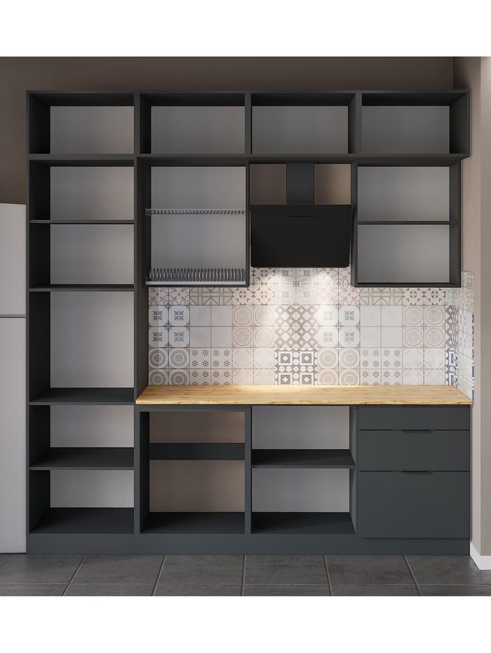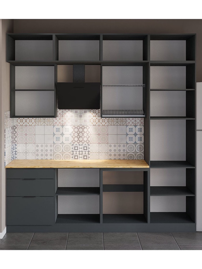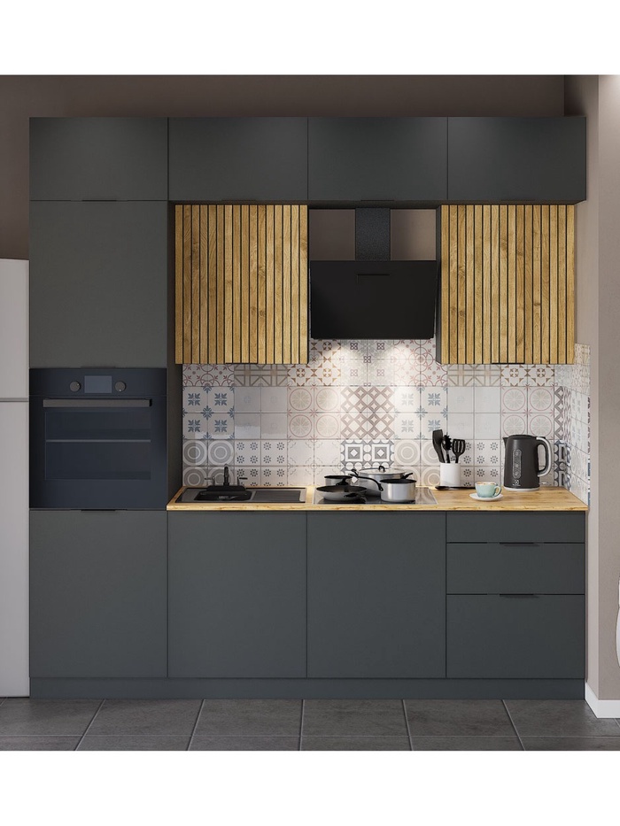 Кухонный гарнитур прямой трёхровневый под потолок «Виктория 1–3Я», 2400×2520 мм, цвет графит/тегола