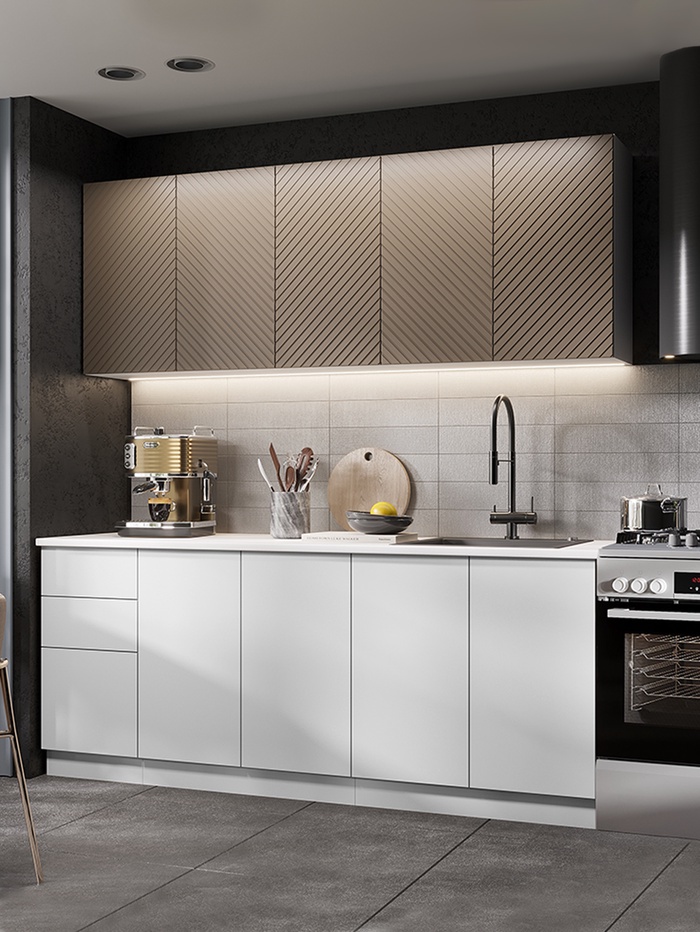 • Комфорт использования: отсутствие ручек облегчает открытие шкафчиков одним касанием («push-to-open»), позволяет комфортно пользоваться кухней каждый день.