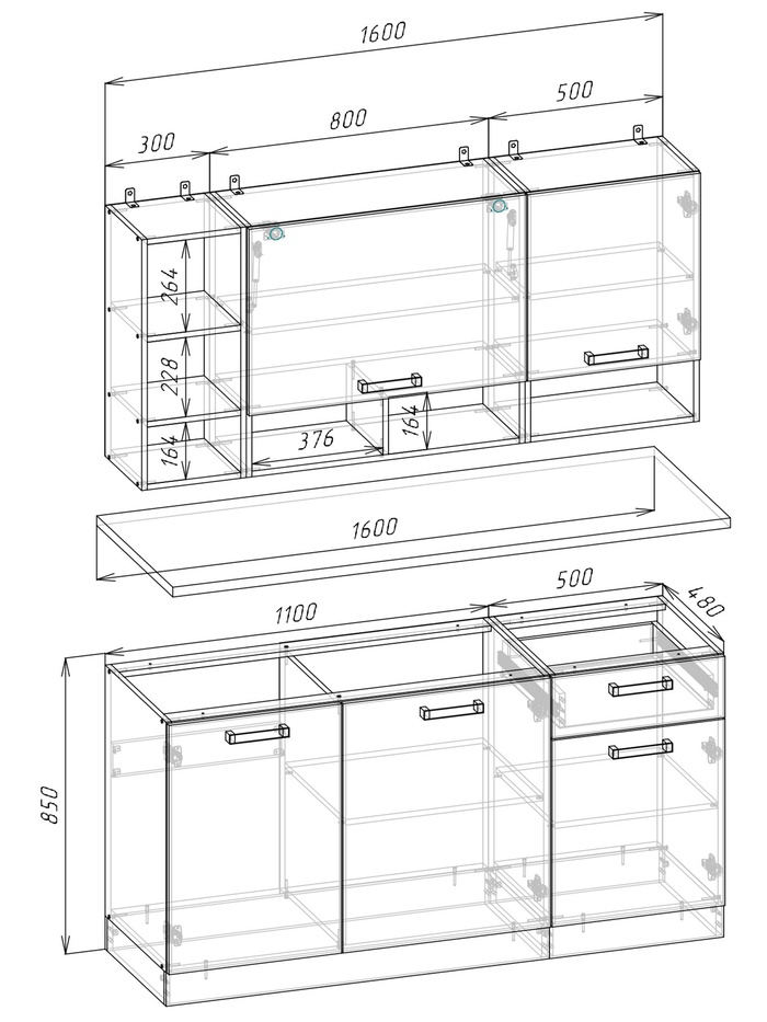 Кухонный гарнитур прямой «Варвара», 1600×600 мм, цвет белый