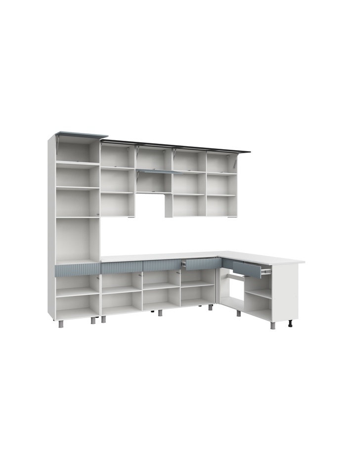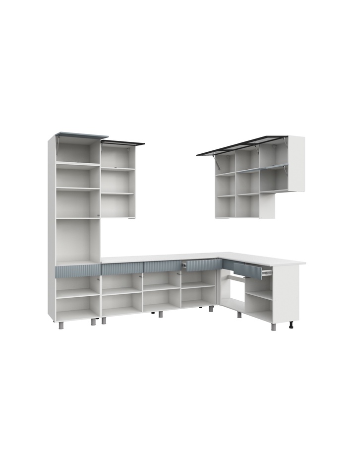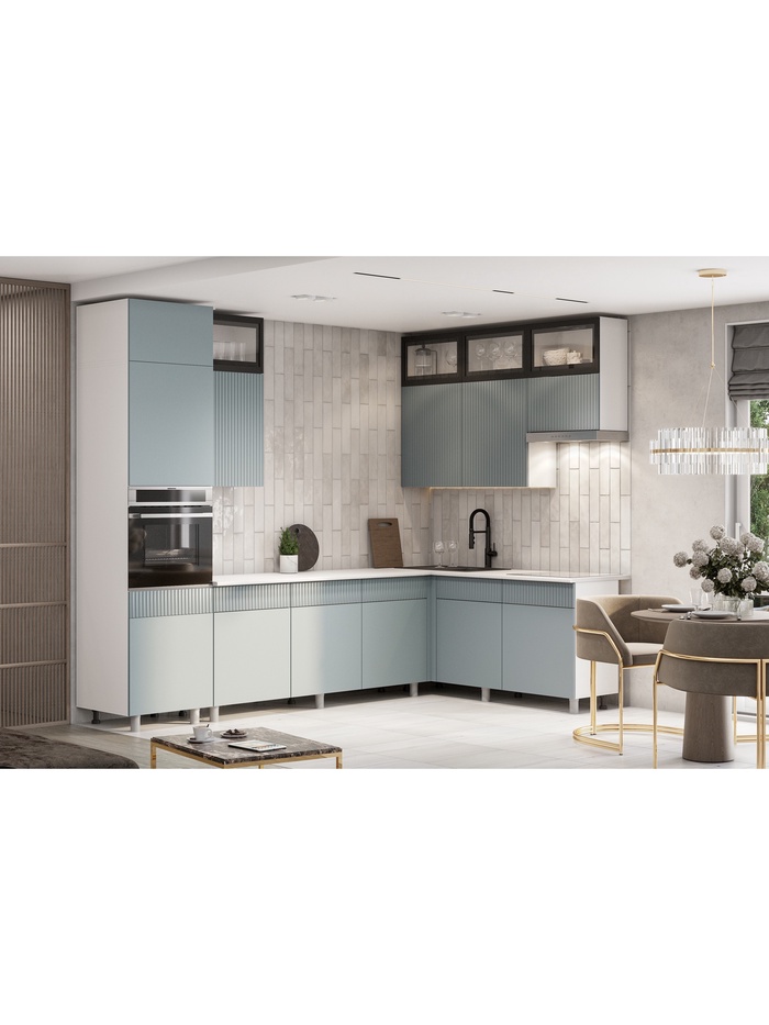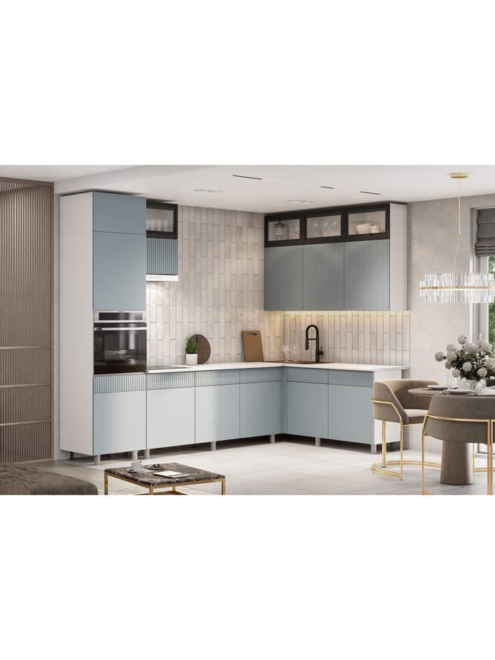 Функциональное и стильное решение для современной кухни. Угловая конфигурация и конструкция до потолка обеспечивают максимум полезного пространства и удобство в повседневной эксплуатации. Продуманная компоновка модулей формирует эргономичную рабочую зону, где всё необходимое находится под рукой. Такое решение особенно удобно для тех, кто часто готовит: рабочие поверхности, зоны хранения и техника выстроены в логичную и комфортную систему.