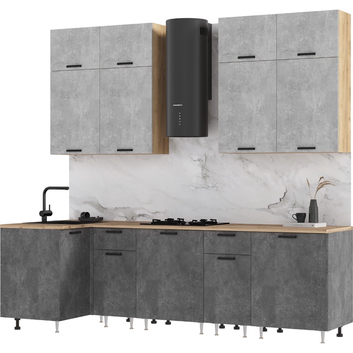 Кухонный гарнитур угловой «Рио» New, 1000×2600 мм, цвет бетон светлый/бетон тёмный/дуб вотан