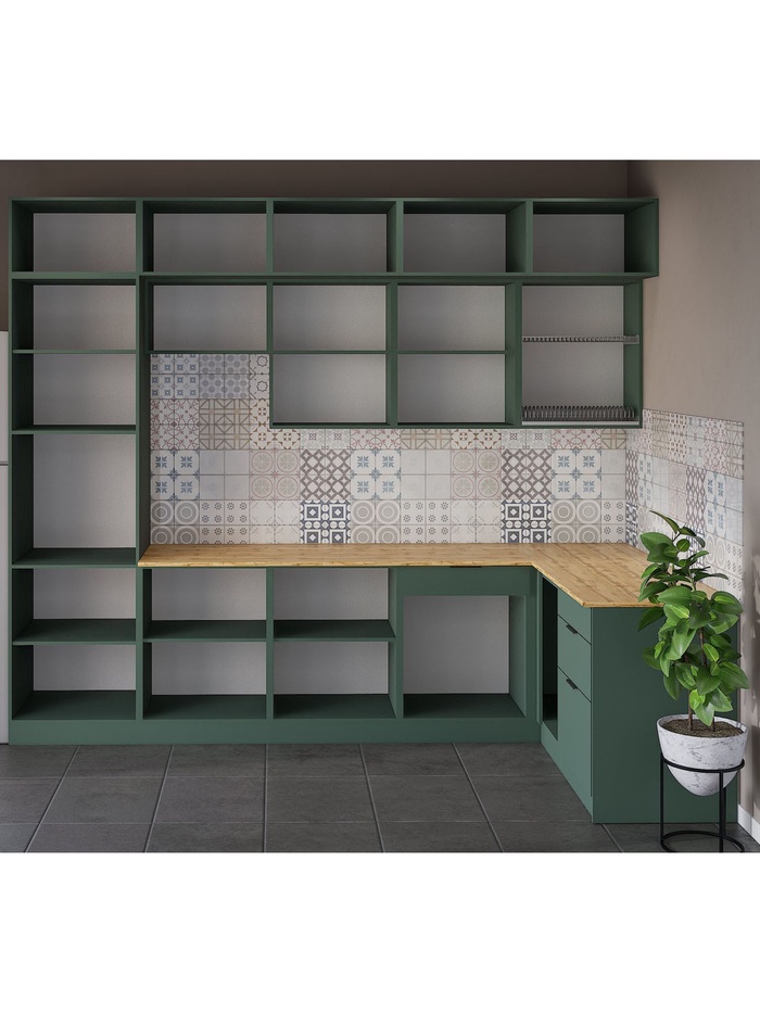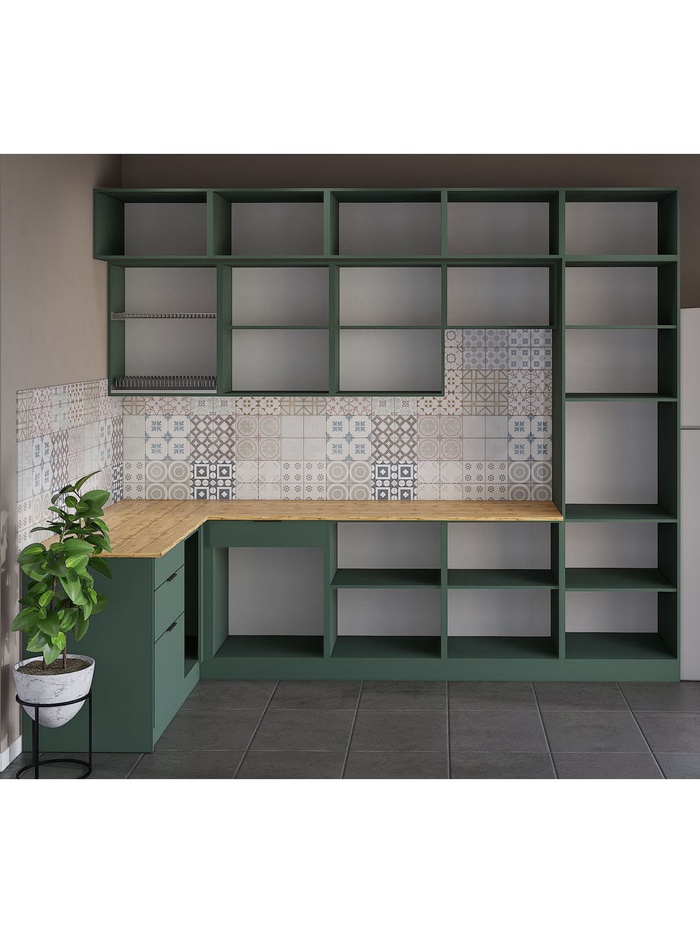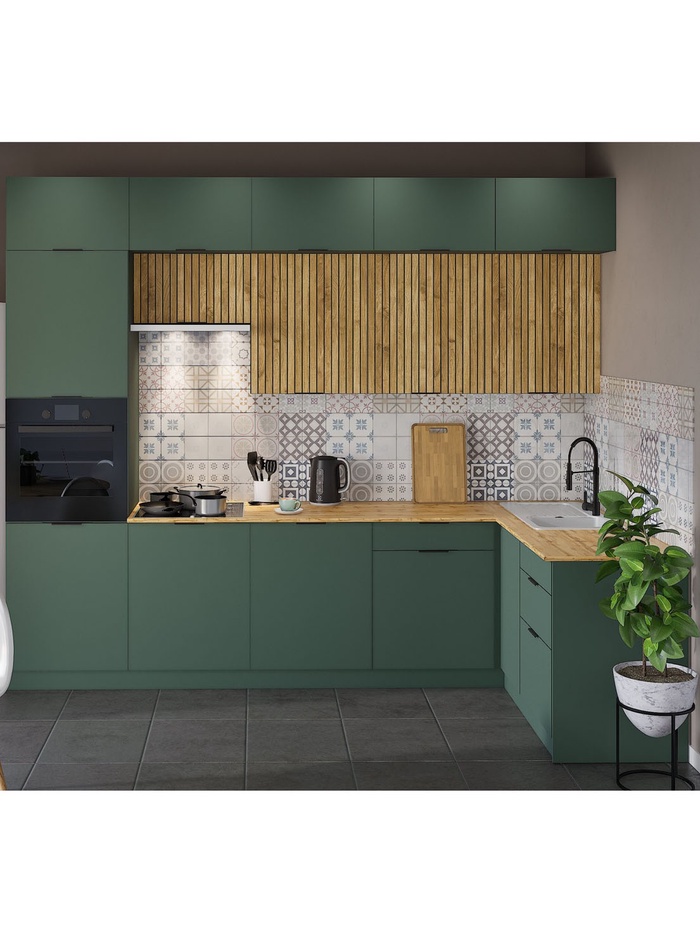 Кухонный гарнитур угловой трёхровневый под потолок «Виктория 3.1–3Я», 3000×2520×1600 мм, цвет кипарисовый/тегола