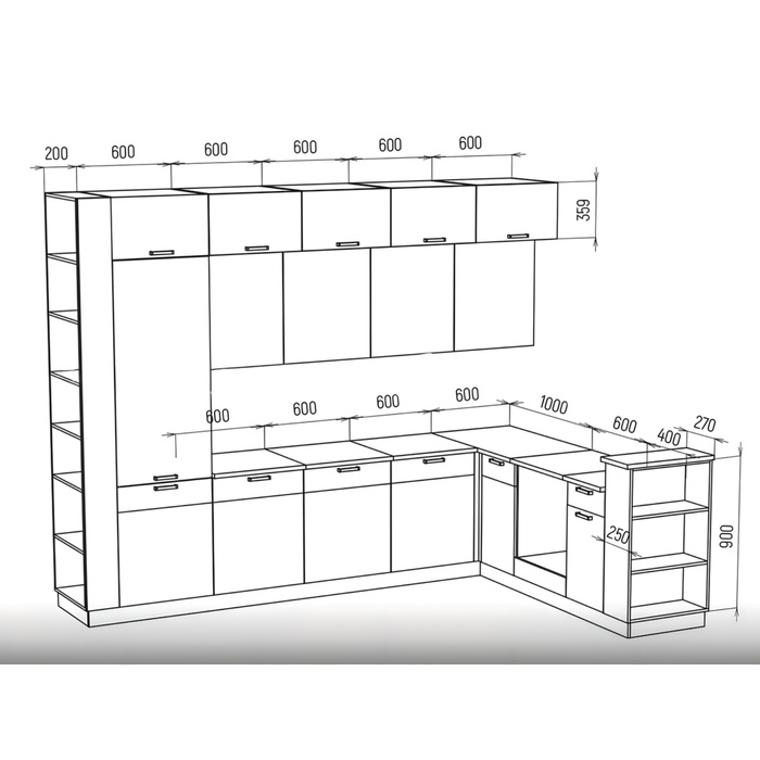 - Просторное хранение: угловая конструкция позволяет эффективно использовать пространство, обеспечивая достаточно места для хранения посуды, утвари и продуктов.