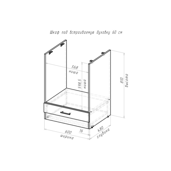 - Встраиваемый духовой шкаф в стол ящиком шириной 600 мм.