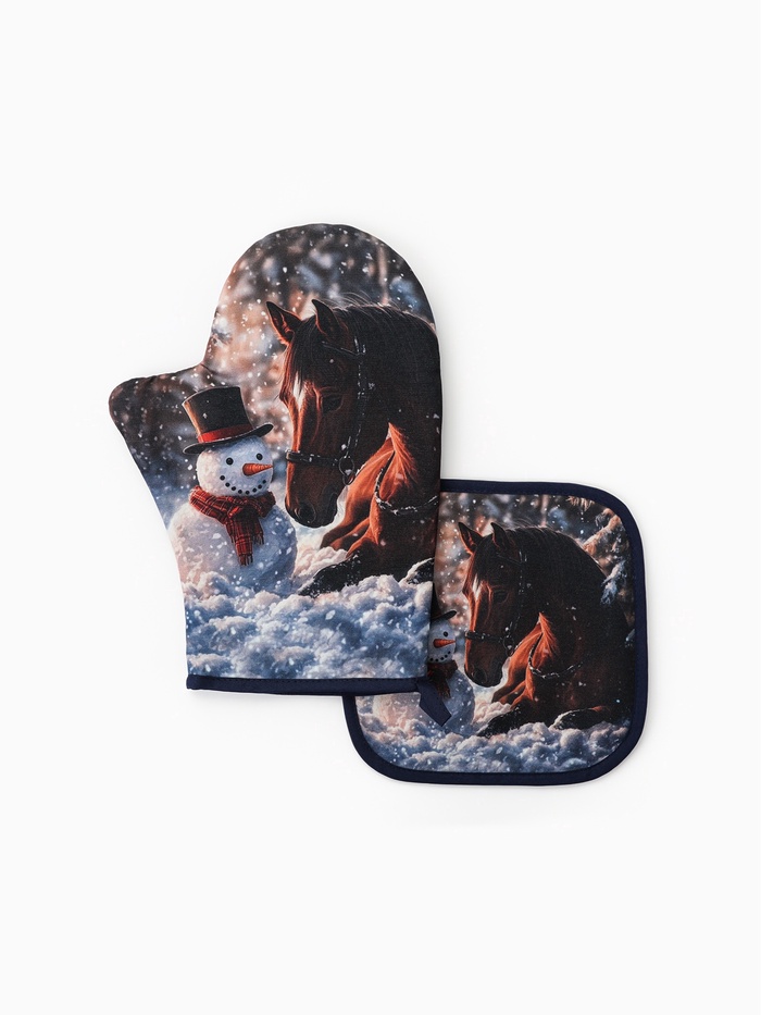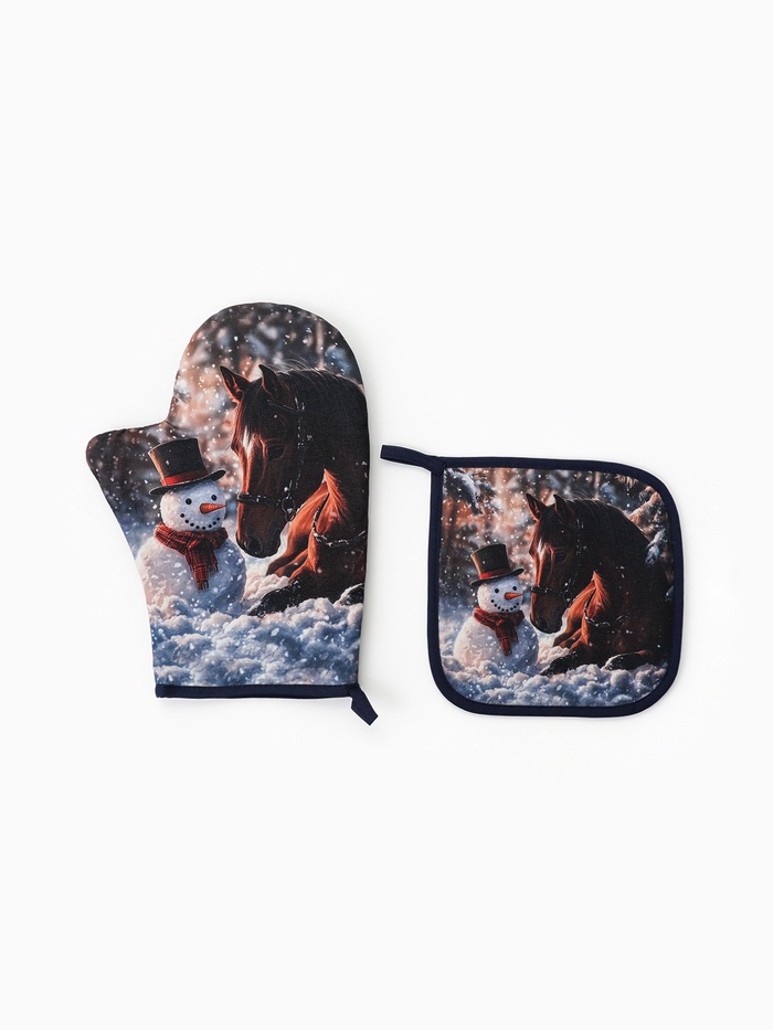 Кухонный набор «Этель»: варежка-прихватка 20×28 см, прихватка 19×19 см, синяя