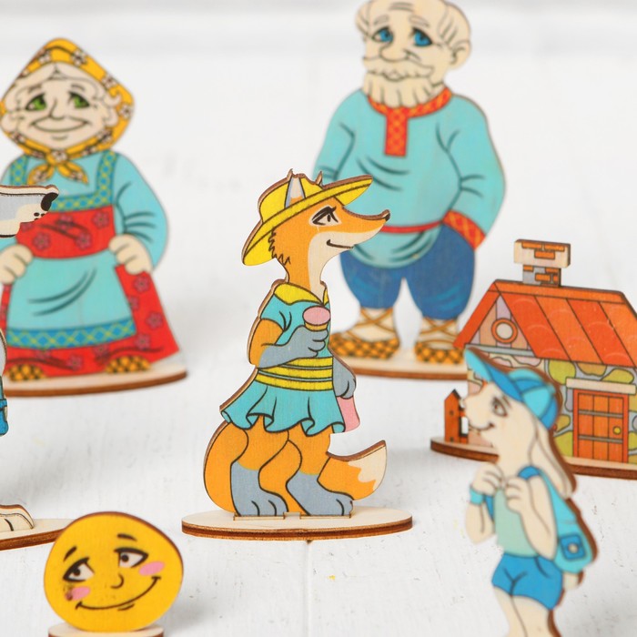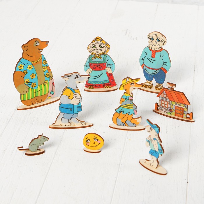 Кукольный театр сказки на столе «Колобок», высота кукол 4-12 см, фигурки односторонние, толщиной: 3 мм