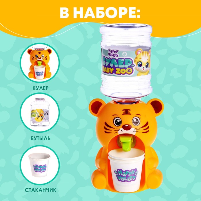Компактный кулер для воды с небольшим резервуаром дополнит интерьер кухни маленькой хозяюшки и сделает игровые сюжеты более реалистичными.