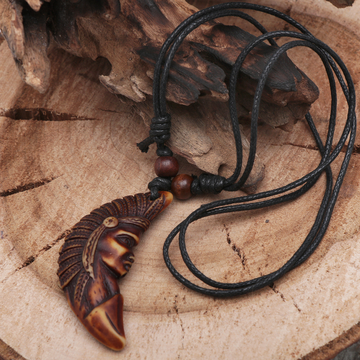 Кулон мужской «Индеец», цвет коричнево-чёрный на чёрном шнурке, 40-80 см регулируется