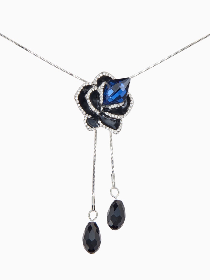 Откройте для себя магию искусства вместе с очаровательным кулоном «Цветок», выполненным в форме розы в изящной палитре синего и черного цветов. Украшение создает впечатление роскоши и элегантности, становясь достойным элементом любого женского гардероба.